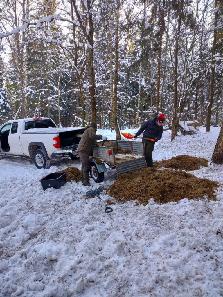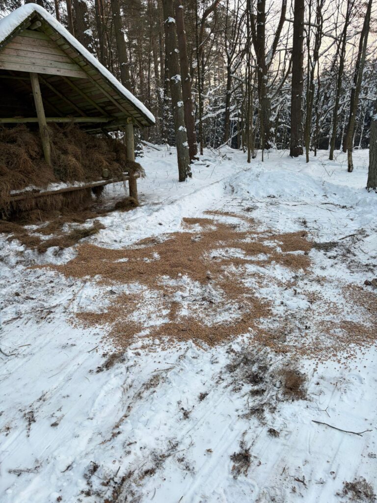 Dostarczanie karmy w takich warunkach to nie jest niedzielny spacer. To walka z zaspami, odśnieżanie dróg dojazdowych i dźwiganie worków, po których siłownia wydaje się zbędnym luksusem. Ale robimy to z uśmiechem (choć czasem zamarzniętym), bo wiemy, że bez tej pomocy natura w północno-wschodniej Polsce mogłaby sobie w tym roku nie poradzić.
